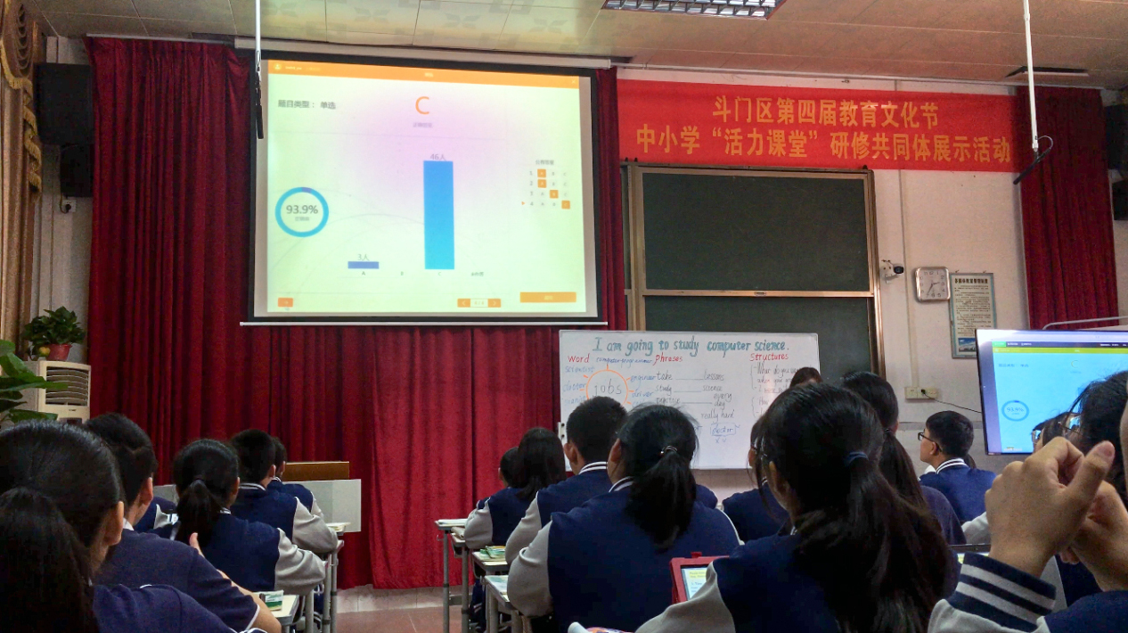 11月28日,斗门区城东中学是开维教育合作多年的学校单位,本次活动有幸邀请城东中学作为代表,展示我司产品参评基于信息技术下的“活力课堂”中学组活动。并由初二年级萧俊玉老师作为代表参与此次展示活动。