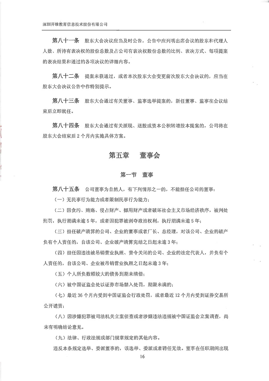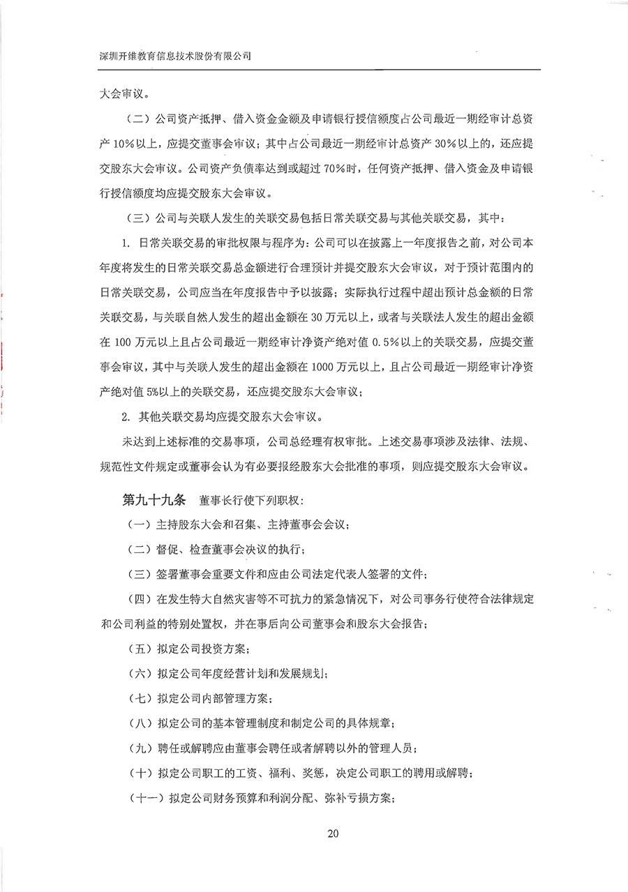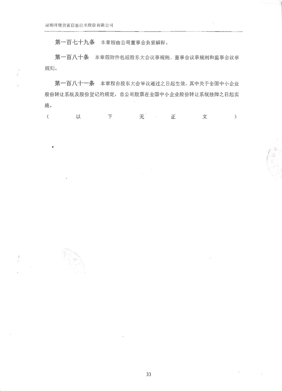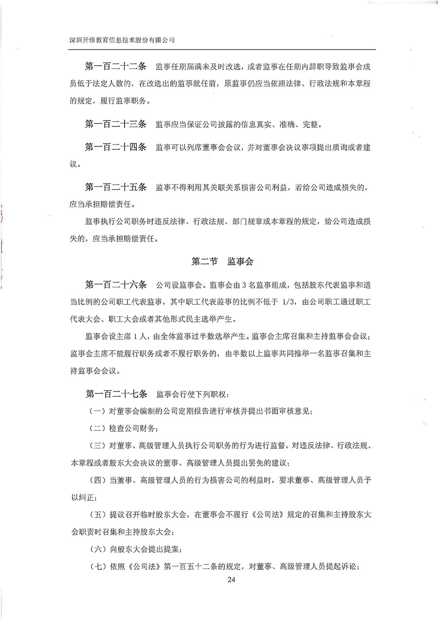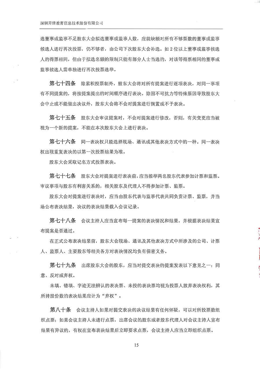 摘要:为维护深圳开维教育信息技术股份有限公司、股东和债权人的合法权益、规范公司的组织和行为,根据《中华人民共和国公司法》、《中华人民共和国证券法》、《非上市公众公司监督管理办法》、《非上市公众公司监管指引第3号-章程必备条款》和其他有关规定,制定本章程。
