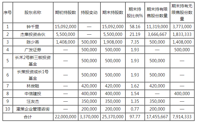 前十名股东间相互关系说明:股东钟千里直接持有杰隼投资合伙 71.50%股权、通过一人有限责任公司深圳杰隼投资咨询有限公司间接持有杰隼投资合伙 1.00%股权,钟千里与陈少燕是表兄妹关系。2.4 公司与控股股东、实际控制人之间的产权及控制关系
